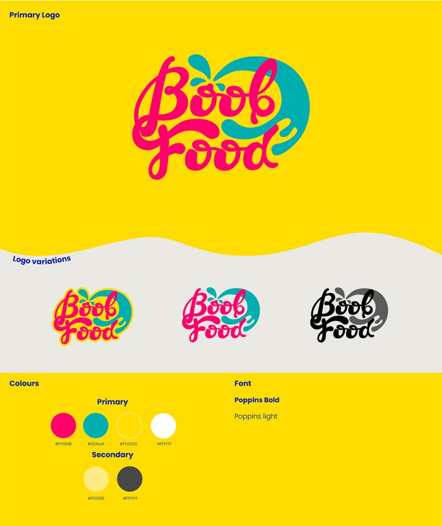 Logo design and branding for lactation baked goods brand Boob Food (2023)